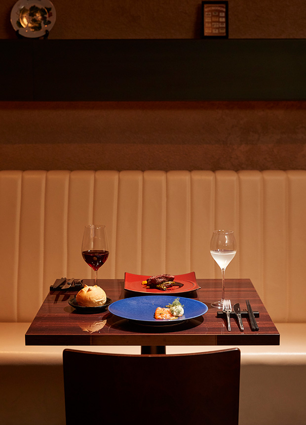 仕事帰りのお食事から、デートや女子会、はたまた記念日や接待などの特別なお席まで、いつ誰といらしても、グラスを傾けながらゆったりと寛げる空間をご用意しております。